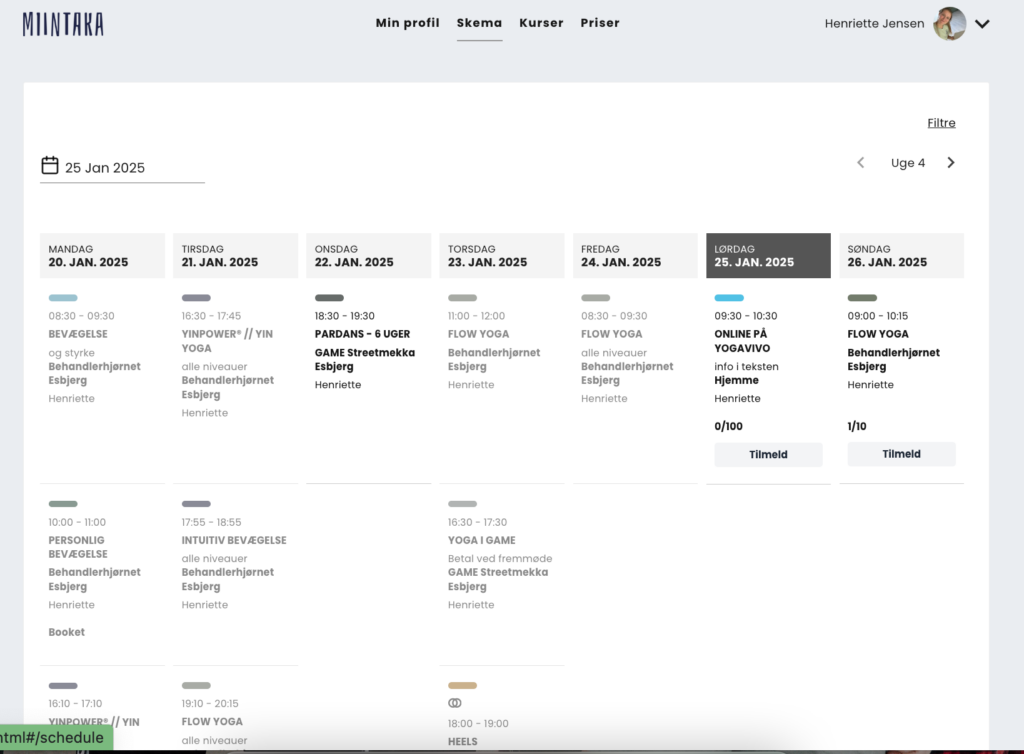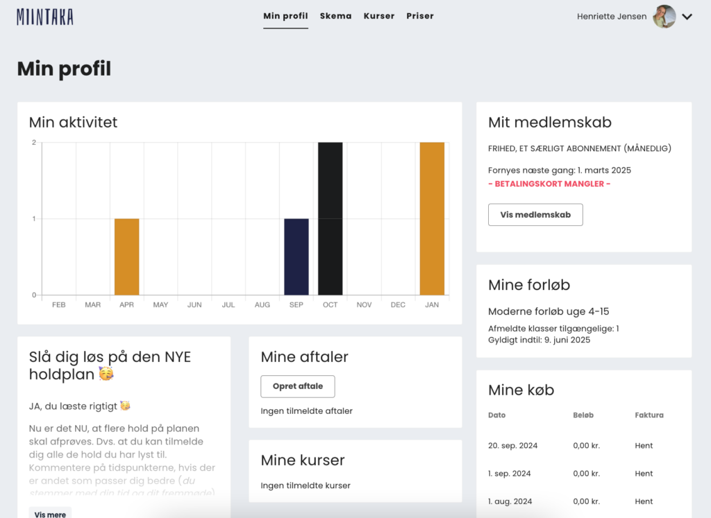 Til venstre, hvor der lige nu står “slå dig løs på den NYE holdplan” kan du løbende følge opdateringer, som giver mening for dig der er en del af Miintaka.